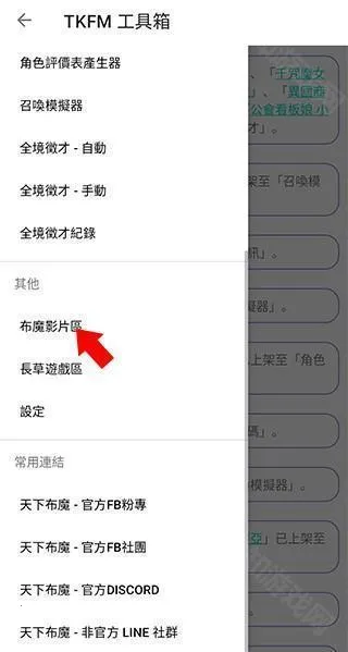 2、打开侧边栏菜单后,往下滑找到并点击布魔影片区