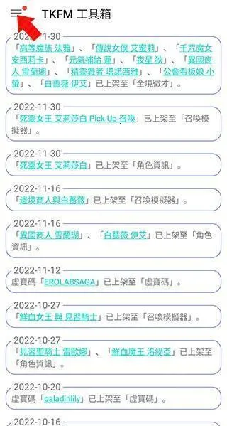 1、下载并打开TKFM工具箱,来到首页后,点击左上角三条横杠按钮
