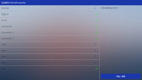 3、点击安装/更新,在线安装/更新运行环境。