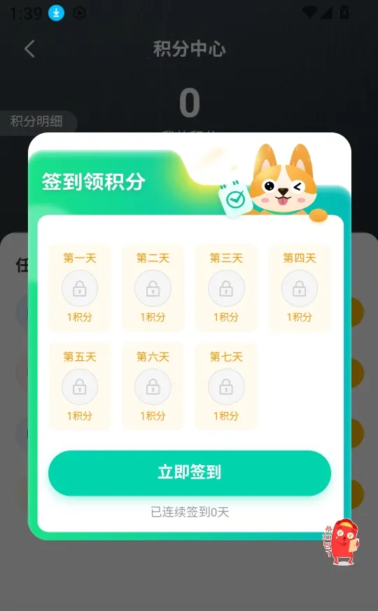 5、如此就可以签到领取积分,点击“立即签到”按钮来实时领取积分。