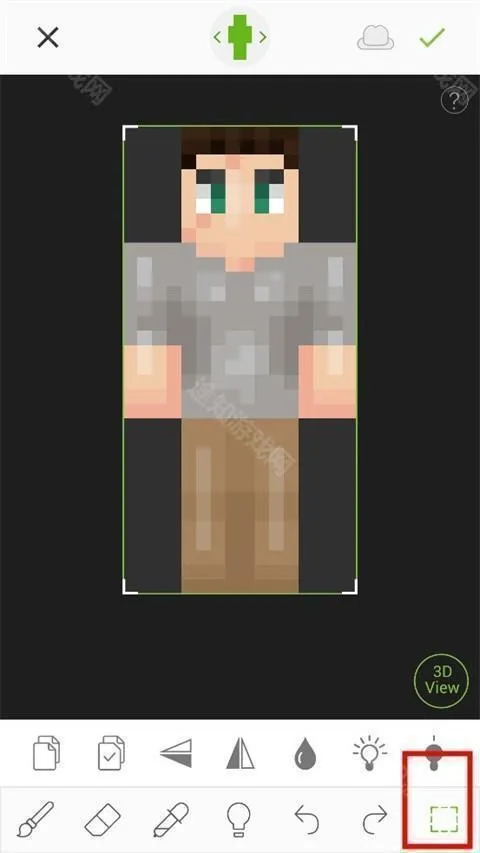 6、下面的功能都比较简单,画笔、橡皮擦等等,最后一个小功能提一下,可以复制粘贴我们所做的皮肤,以及垂直翻转和镜像翻转等,都比较的简单和平时编辑图片差不多;