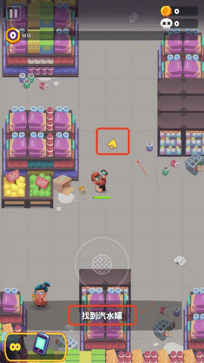 第一步,找到汽水罐,玩家需要跟着黄色箭头走
