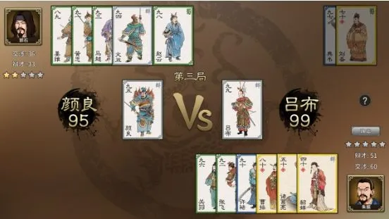 在叶子牌当中,根据手中的牌来判断,因为手牌的数量是与舌战双方的辩才交涉属性相关的,如果牌好,大可以直接吃光对方;如果牌小时,采用田忌赛马的方法,利用己方的小牌骗取对方大牌打出来,从而在其他牌上优于对方。叶子牌采取的是五局三胜制,只需要赢下对方三张牌即可。