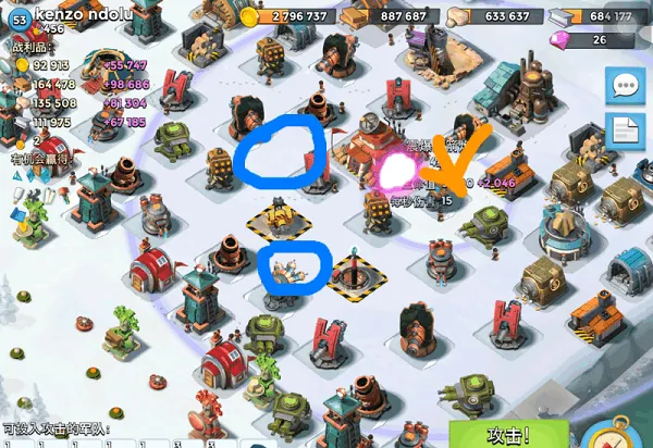 【高阶】这里就讲到一个卡位问题 当你还有其它部队 却不想让他们攻击控制建筑,怎么办呢?这里举纯妹为例 你可以把妹妹引导到菊花的后面 然后引导大本 这时候按下技能 只要伊娃离的够近 就能成功控到菊花 从而在吸引火力的同时解决棘手目标 如果在不同方位可能需要用上震爆弹 这个技术是看经历和觉悟的 我也不太会