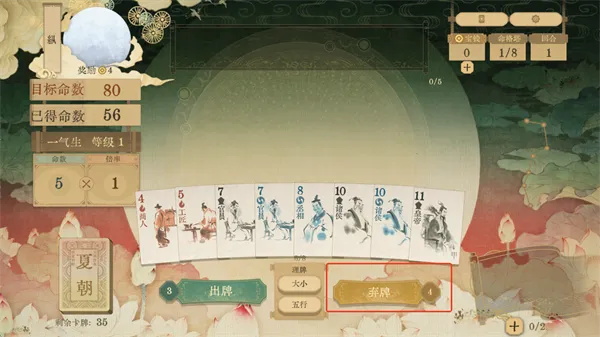 4.游戏中有五次弃牌机会,可以选择无法组合的牌弃出并且摸取相应牌数。