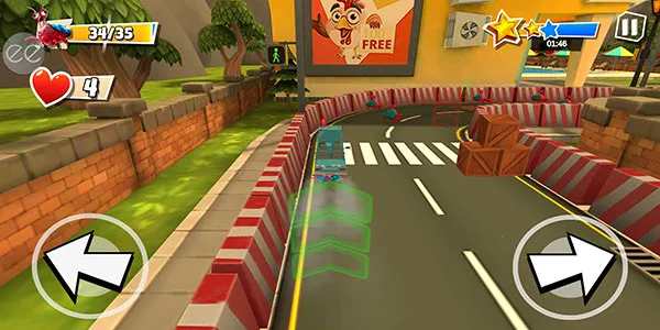 7、你在驾驶的过程中会见到堆在赛道上的盒子,我们要尽可能绕过它们,否则会损失生命值,也就是左侧爱心的数量。