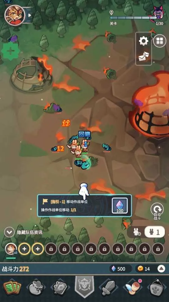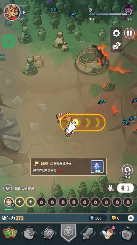 2.拖动队伍进行移动,寻找敌人开始战斗
