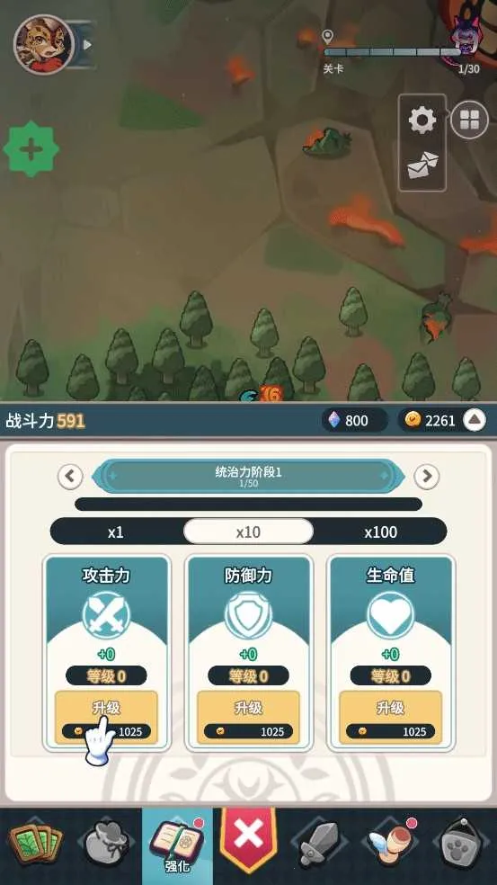 5.使用金币强化攻击力,防御力,生命值等角色属性