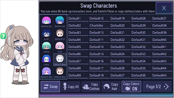 GachaStar加查之星是一款卡通换装模拟游戏,画面精美易上手。有海量装扮元素,能自由创造装扮角色,体验互动冒险乐趣。可保存加载场景、导入导出角色,还有多种模式及小游戏,注重社交,能展现想象力创作。